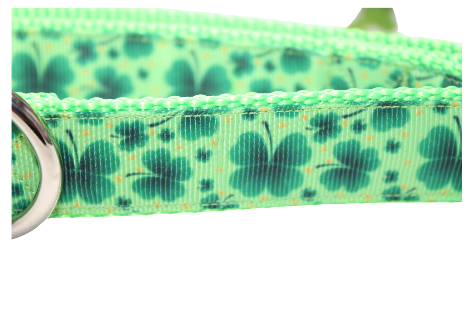 All collars are handmade made using 1-inch (x-large and large) 3/4 inch (medium and small) heavy nylon webbing grosgrain ribbon. The buckle is heavy grade plastic with side release. The x-large collar adjust to best fit dogs with necks ranging form 18-28 inches. The large collar adjusts to best fit dogs with necks ranging in size from 15 - 22 inches. The medium collar adjusts to best fit dogs with necks ranging in size from 12-18 inches. The small collar adjusts to best fit dogs with necks ranging in size from 9 to 14 inches.