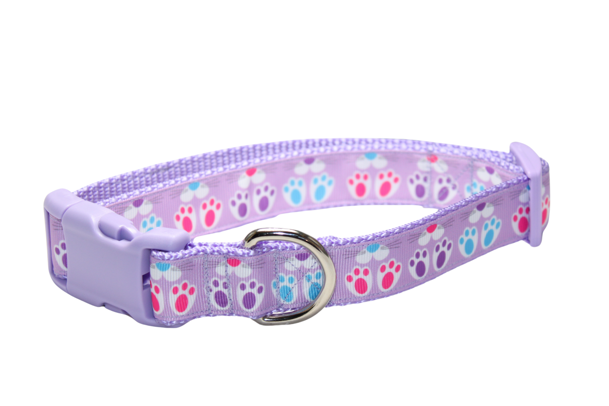 All collars are handmade made using 1-inch (x-large and large) 3/4 inch (medium and small) heavy nylon webbing grosgrain ribbon. The buckle is heavy grade plastic with side release. The x-large collar adjust to best fit dogs with necks ranging form 18-28 inches. The large collar adjusts to best fit dogs with necks ranging in size from 15 - 22 inches. The medium collar adjusts to best fit dogs with necks ranging in size from 12-18 inches. The small collar adjusts to best fit dogs with necks ranging in size from 9 to 14 inches.