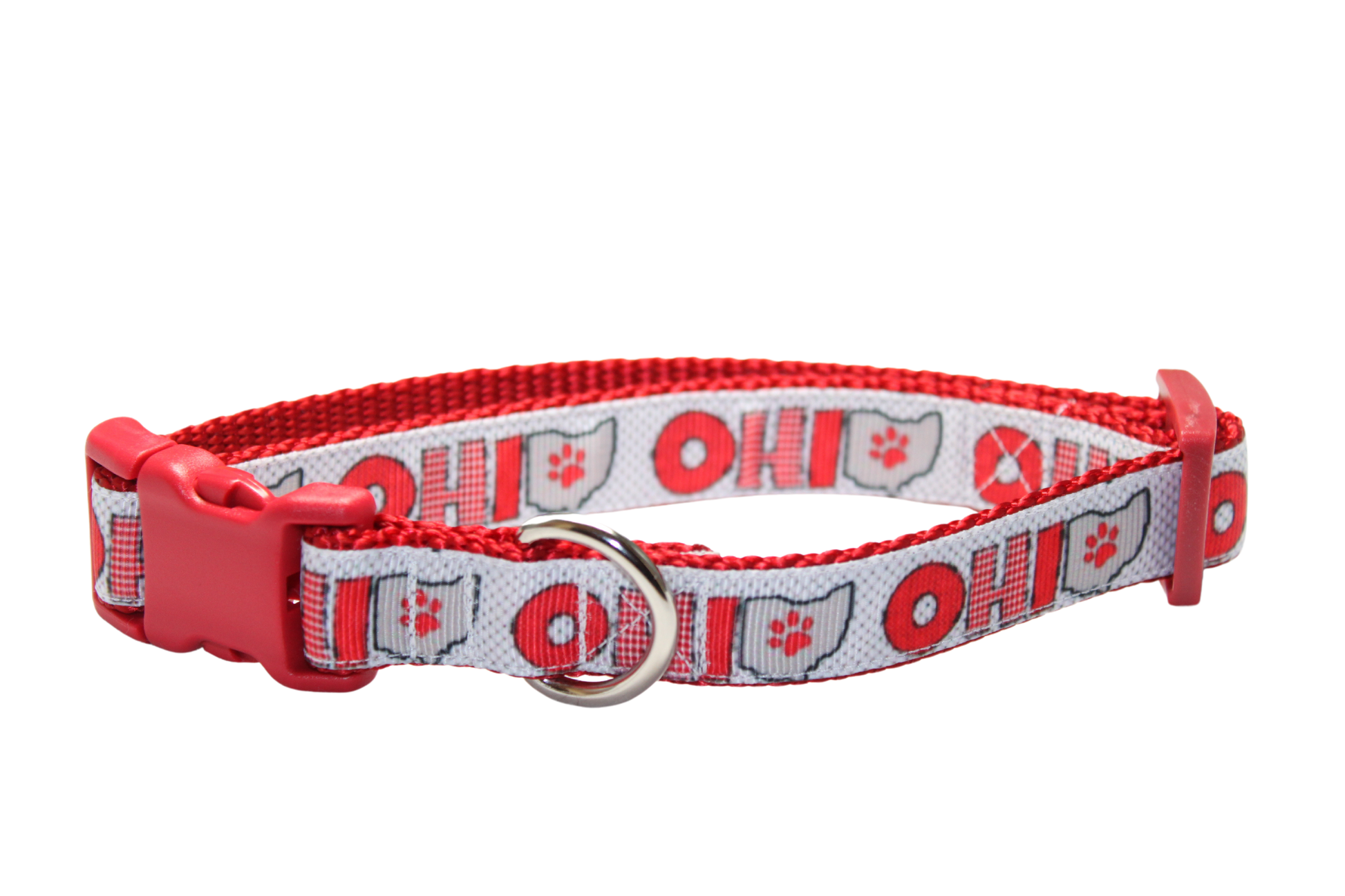 All collars are handmade made using 1-inch (x-large and large) 3/4 inch (medium and small) heavy nylon webbing grosgrain ribbon. The buckle is heavy grade plastic with side release. The large collar adjusts to best fit dogs with necks ranging in size from 15 - 22 inches. The medium collar adjusts to best fit dogs with necks ranging in size from 12-18 inches. The small collar adjusts to best fit dogs with necks ranging in size from 9 to 14 inches.