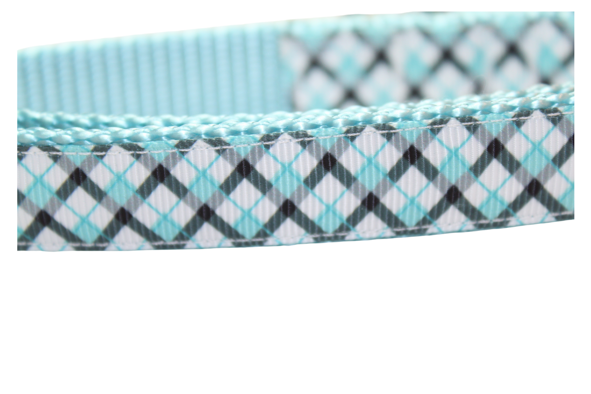 All collars are handmade made using 1-inch (x-large and large) 3/4 inch (medium and small) heavy nylon webbing grosgrain ribbon. The buckle is heavy grade plastic with side release. The x-large collar adjust to best fit dogs with necks ranging form 18-28 inches. The large collar adjusts to best fit dogs with necks ranging in size from 15 - 22 inches. The medium collar adjusts to best fit dogs with necks ranging in size from 12-18 inches. The small collar adjusts to best fit dogs with necks ranging in size from 9 to 14 inches.