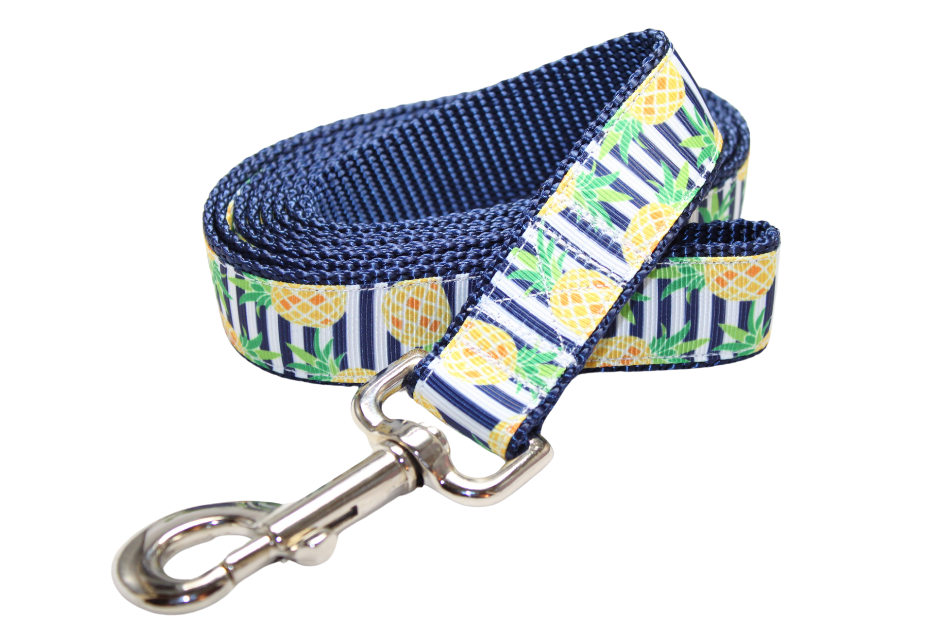 All leashes are 6ft and made using heavy grade nylon webbing, strong plastic side release buckles, and heavy duty nickel plated swivel snap hooks on the leashes.